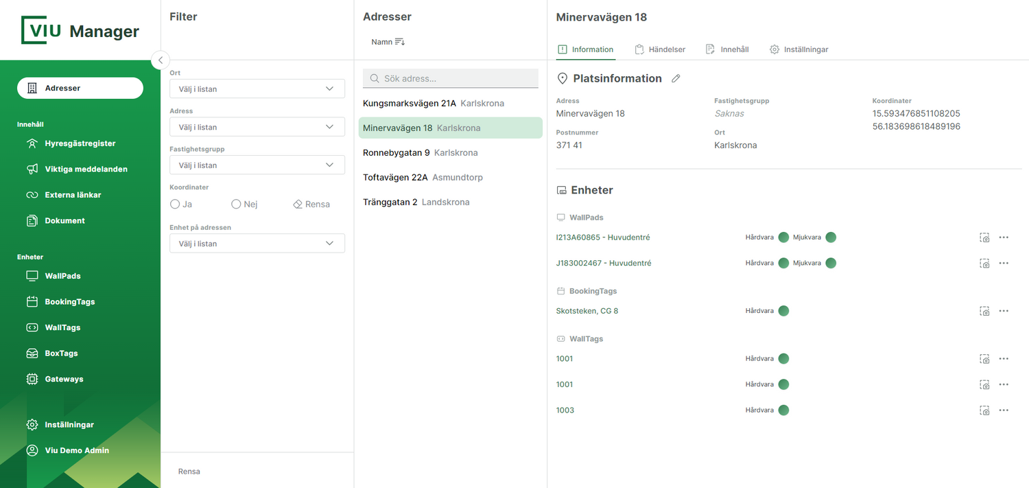 För fastighetsägare och hyresvärdar förenklas administrationen avsevärt genom ViuManager, ett kraftfullt verktyg för att enkelt uppdatera boenderegistret och annan kritisk information och som synkroniseras automatiskt med de flesta fastighetssystemen.